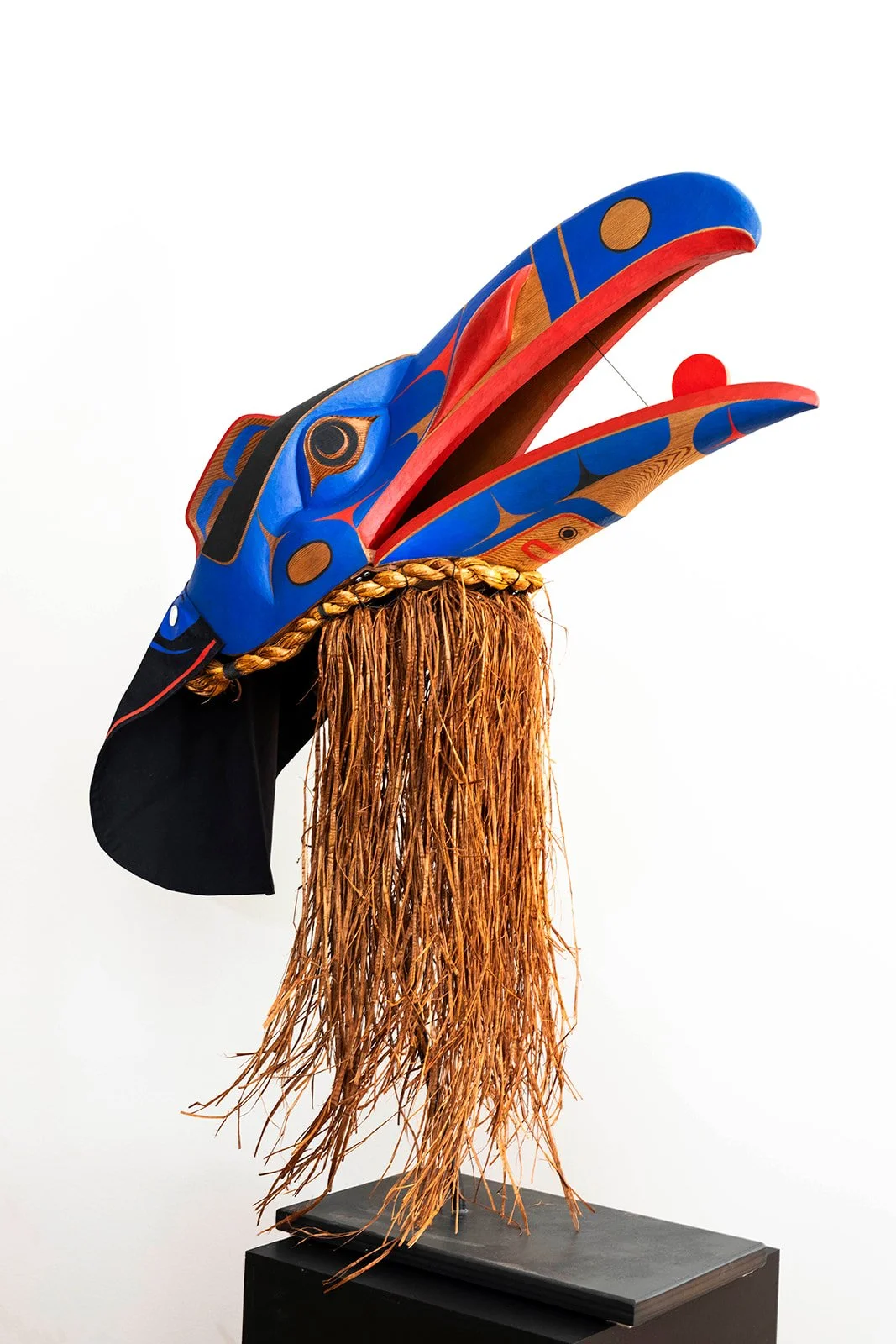 "Working with Gordon on a special commission mask was a joy. He is a warm, thoughtful and extremely gifted artist and carver. I appreciated the professional approach provided by Ahtsik Gallery with respect to setting a contract for payment. In all aspects I felt able to provide input when required. Due to distance, all our connections were by phone or email, but he was attentive, responsive and provided invaluable insight along the way. A beautiful piece of art embodied with deep meaning and spirit can never be rushed. The result was a stunning mask that means the world to my husband, and to me. As with most of the best things in life, the journey is a valuable part of the experience. I felt I was able to get to know Gordon better along the way, and he spent time with both of us when he delivered the mask, making the entire process richer and the magnificent mask even more meaningful. I wouldn’t hesitate to work with Gordon and the Ahtsik Gallery again.”